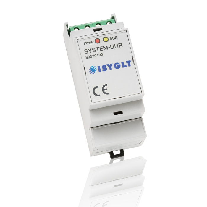 With the System Clock functions of the ISYGLT system can be controlled time-dependently. The System Clock Module provides the Master Module with the exact time, date and weekday (summer time, winter time and leap year are automatically taken into account) via the subnet. Up to 128 switching times and up to 128 switching days can be conveniently managed in the Master Module using a free software tool. The System Clock Module is set via the parameterisation function in the ISYGLT ProgramDesigner. It is also possible to synchronize the Clock with a superior Master Clock via system variables (hours and minutes). The System Clock has a power reserve of at least 5 years in the event of a power failure.