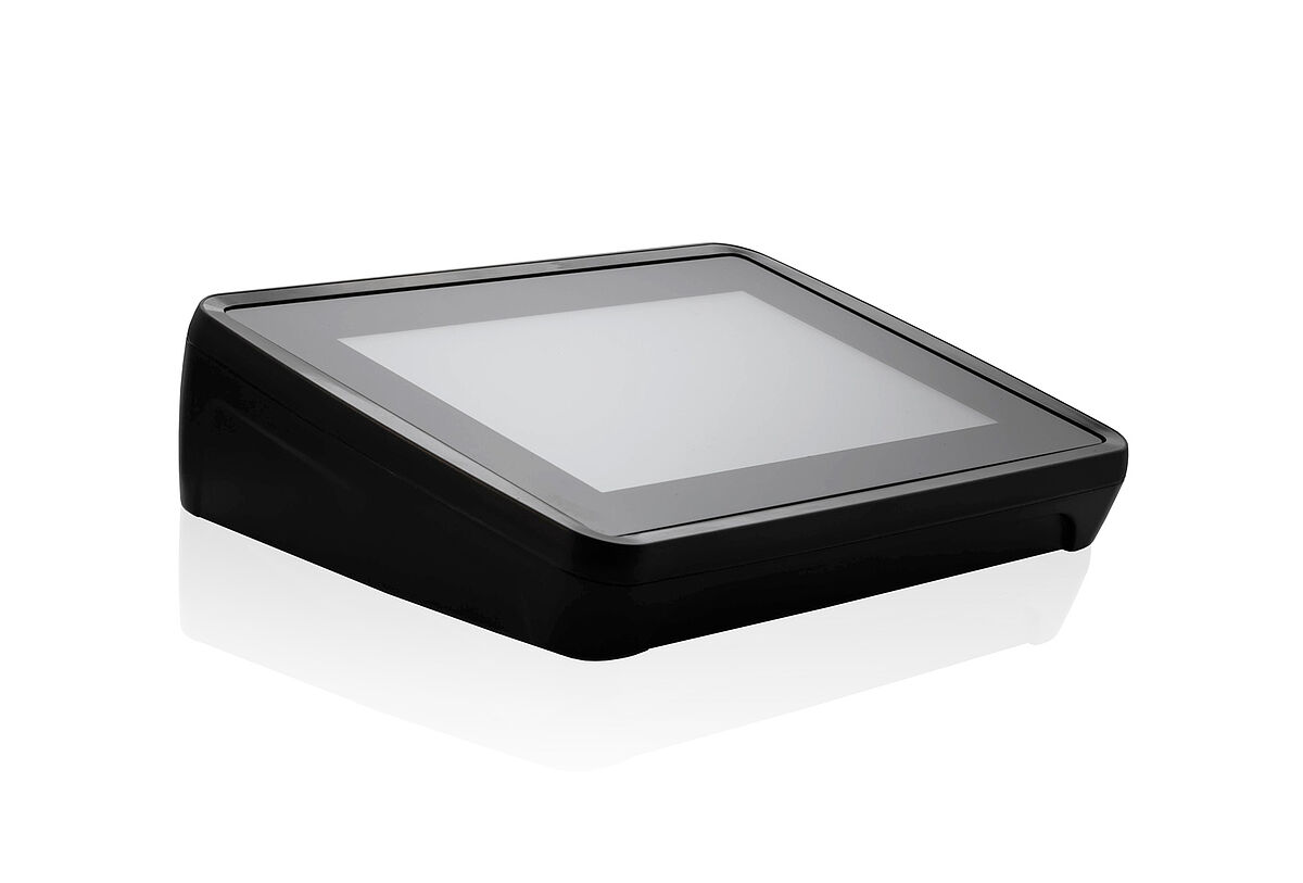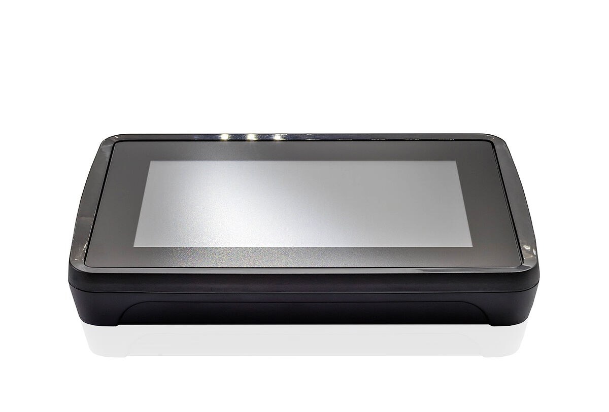 In addition to the black plastic desk housing, stainless steel desk housings in various colour combinations are also available as variants. Images can also be displayed using the screen saver function. Thus, the panel is also a beautiful picture frame when no operation is required.