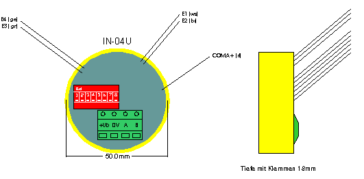 | Connection | screw terminals 2.5mm² for BUS, solid wires 0.8mm for inputs |