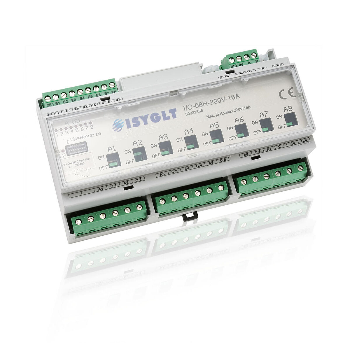 The I/O module I/O-08H-230V-16A is designed for applications where manual intervention is required, or where the state of the relays must be maintained in the event of a BUS or voltage failure.