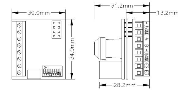 | Dimensions | LxWxD 30x34x31.2mm (both PCBs completely assembled) |