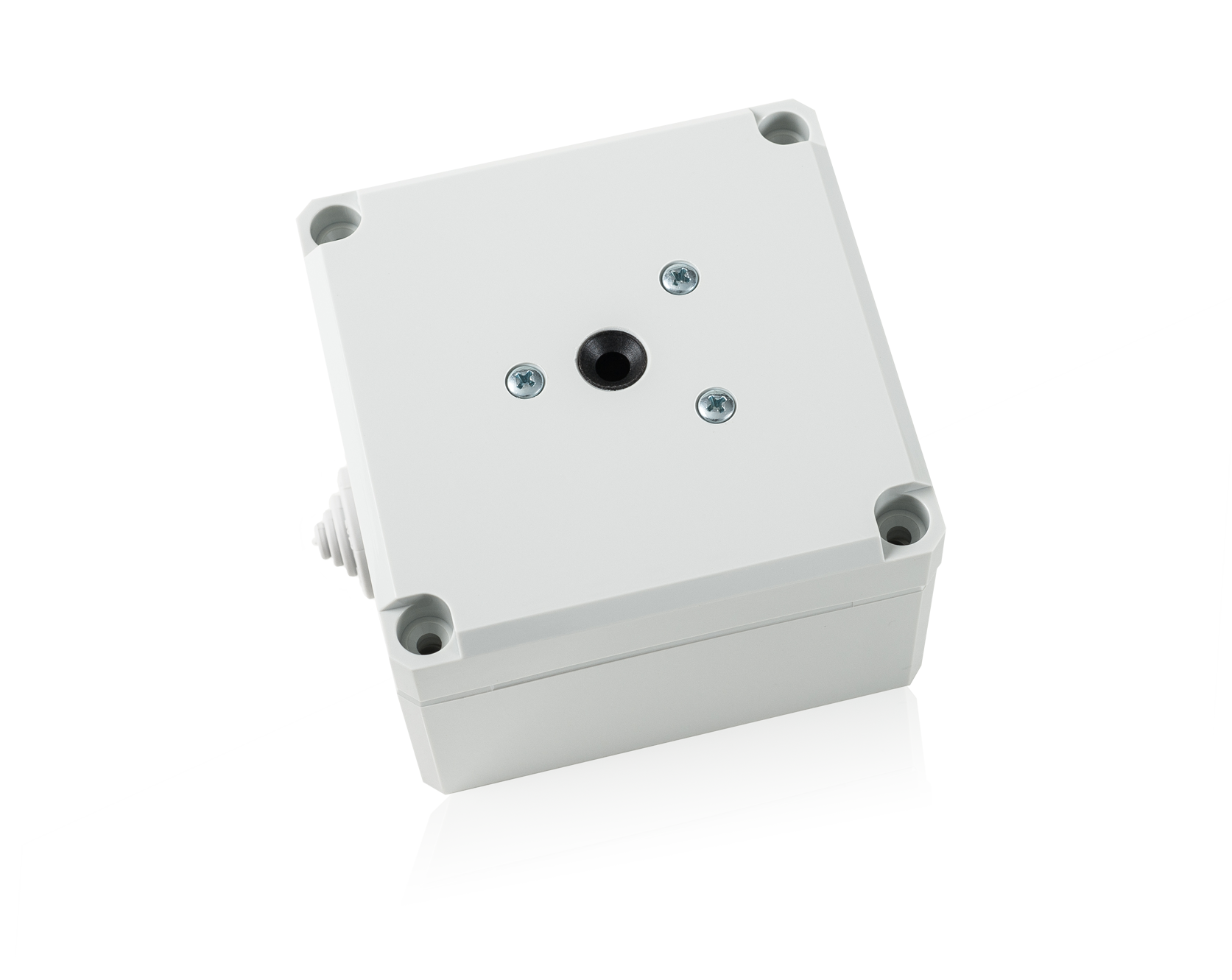 - Surface-mounted in stable thermoplastic housing, LxWxD 80x82x56mm grey