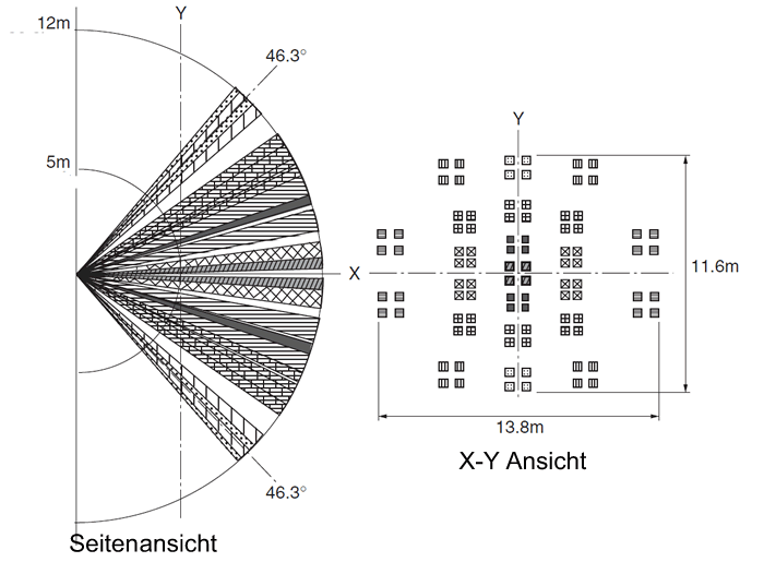 The ISYGLT BW-06 Motion Sensor is based on passive infrared monitoring technology. The very small round lens is used here to monitor 92 zones in a radial manner. The detection range is optimised for high rooms up to 12.5m. Due to the integrated line amplifier, the length of the control line up to the I/O Module or 24V power module can be up to 100m.