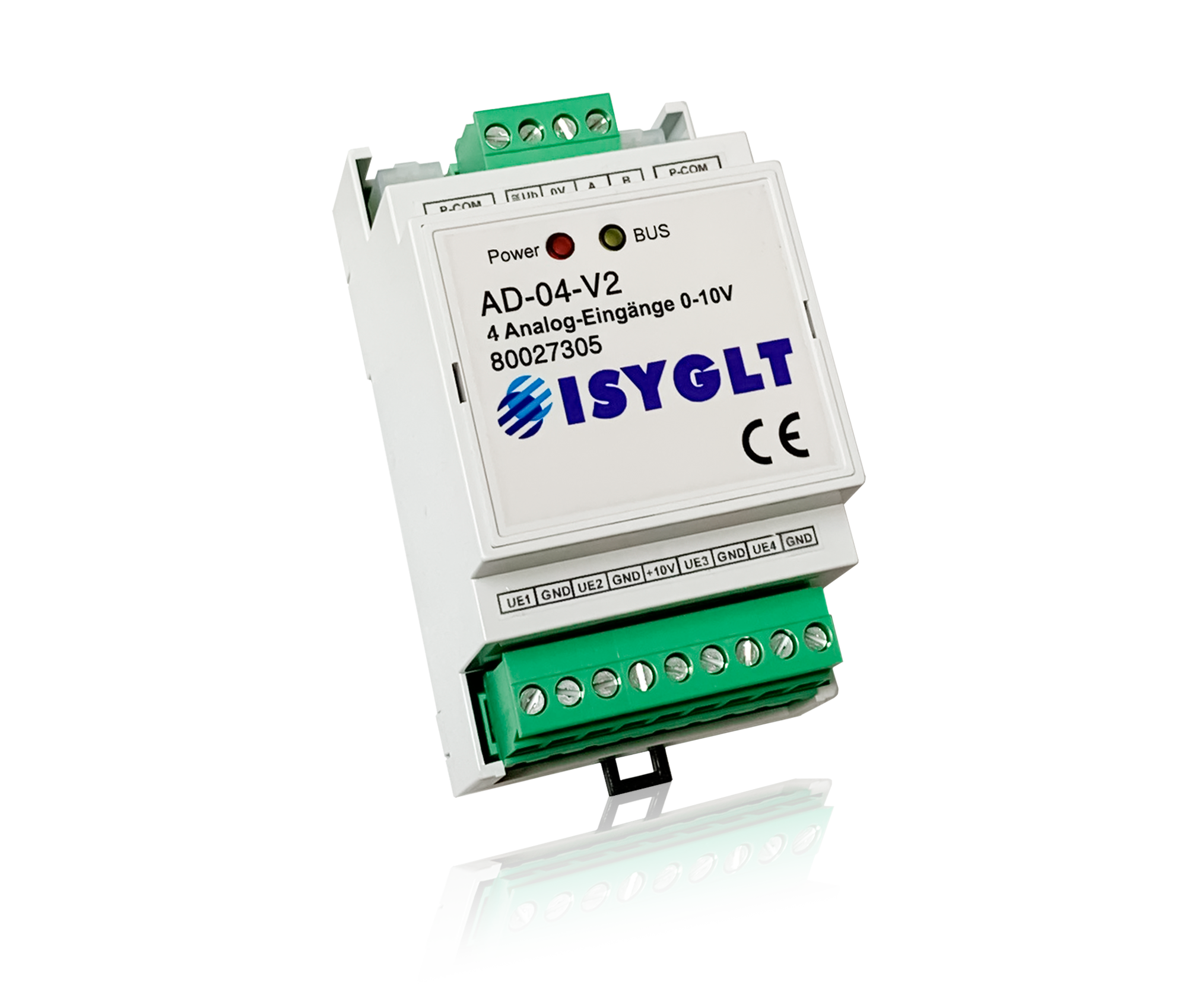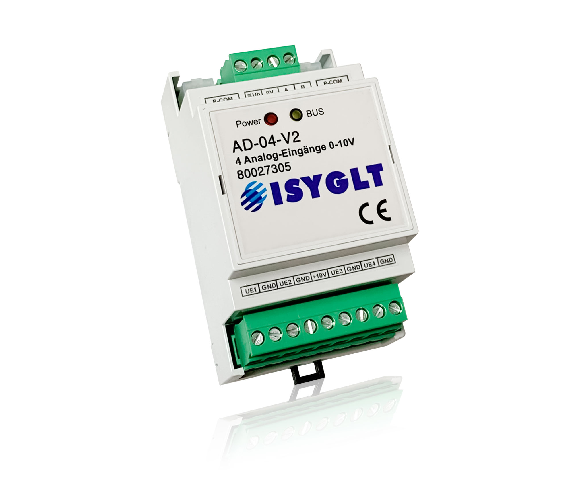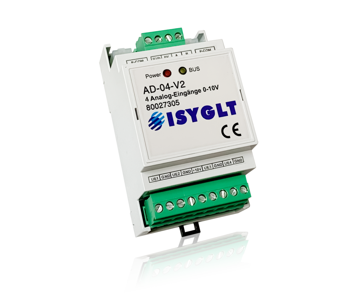 Analog-Modul zum Einlesen von 4 separaten Analogwerten 0-10V in das Subnet mit einer Auflösung pro Kanal von 8 oder 12 Bit.