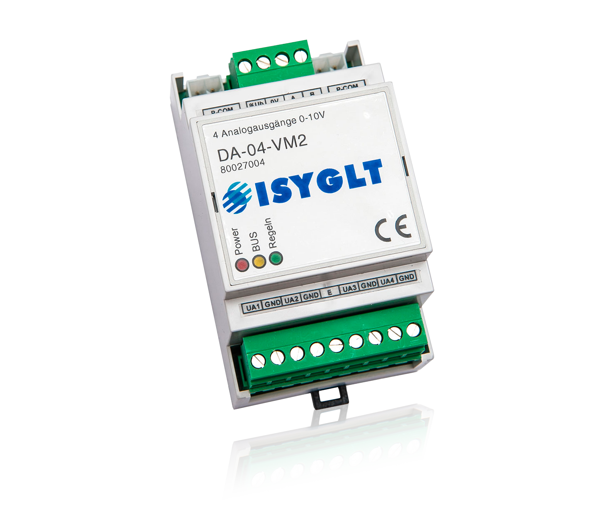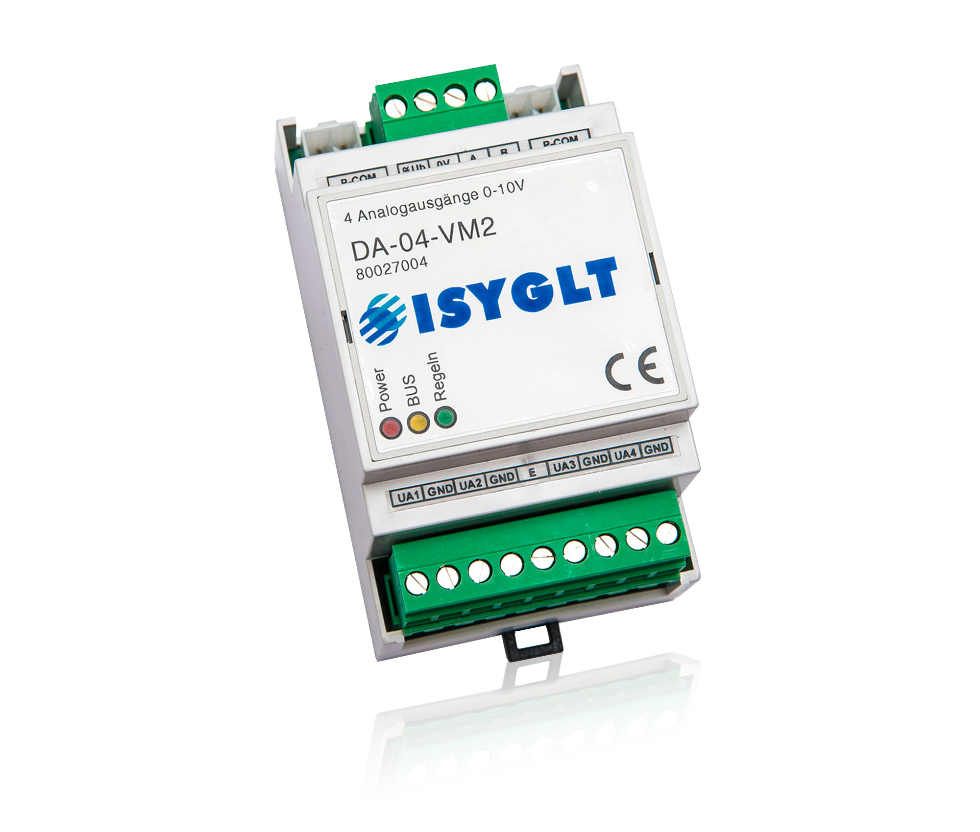 Die Spannungsausgänge sind galvanisch vom Subnet und von der Betriebsspannung des Moduls getrennt. Zwischen den 4 Ausgängen untereinander besteht keine Potentialtrennung. Die Ausgänge können als Stromquelle oder Stromsenke mit 20mA pro Ausgang belastet werden. Die 0-10V- und 1-10V-Ansteuerung ist mit diesem Modul problemlos möglich.