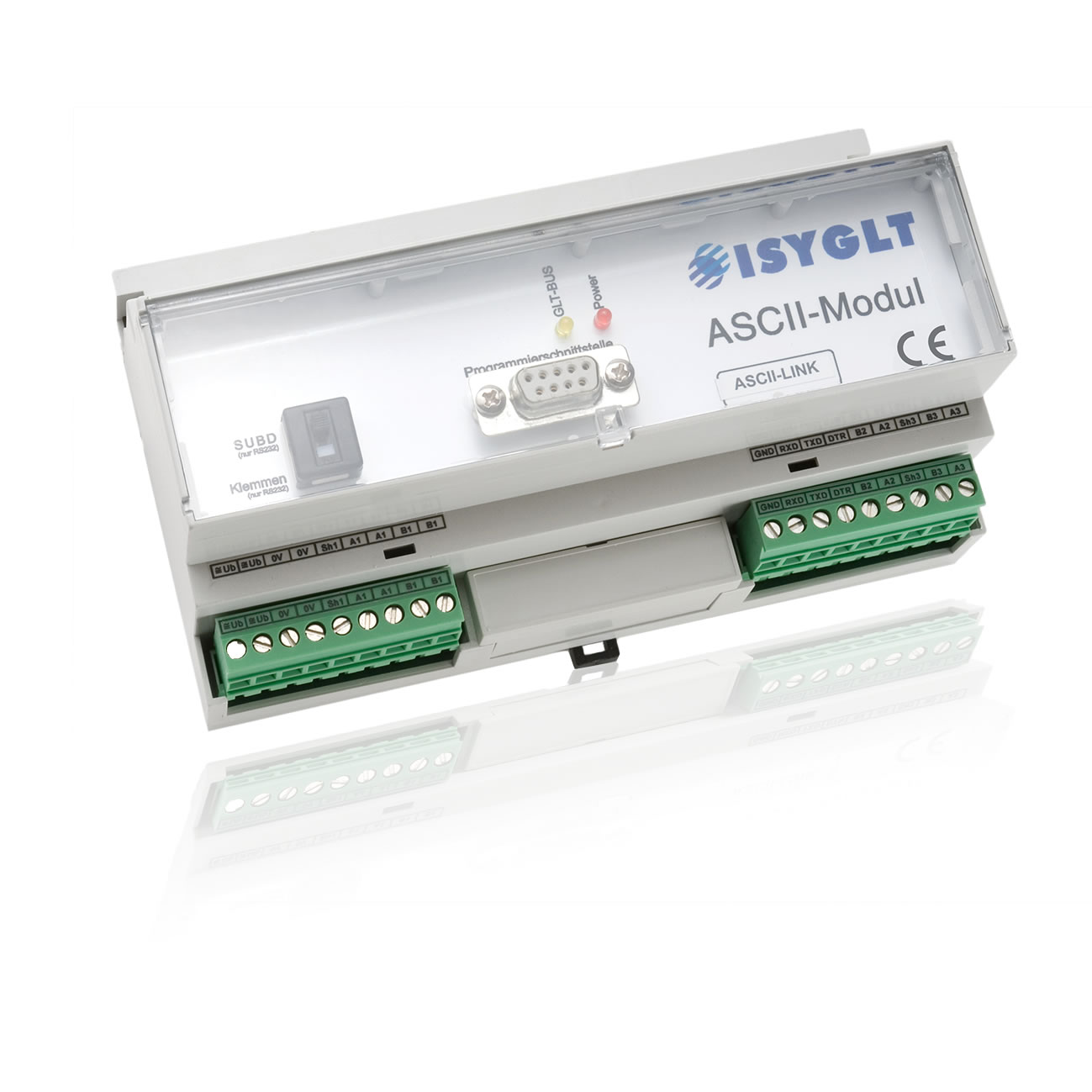 Mit dem ASCII-LINK-Modul besteht die Möglichkeit, digitale und analoge Daten per ASCII-String über die RS-232-Schnittstelle zu senden und zu empfangen. Dadurch kann es mit allen Systemen kommunizieren, die über eine RS-232-Schnittstelle verfügen und an das definierte Protokoll angepasst werden können.