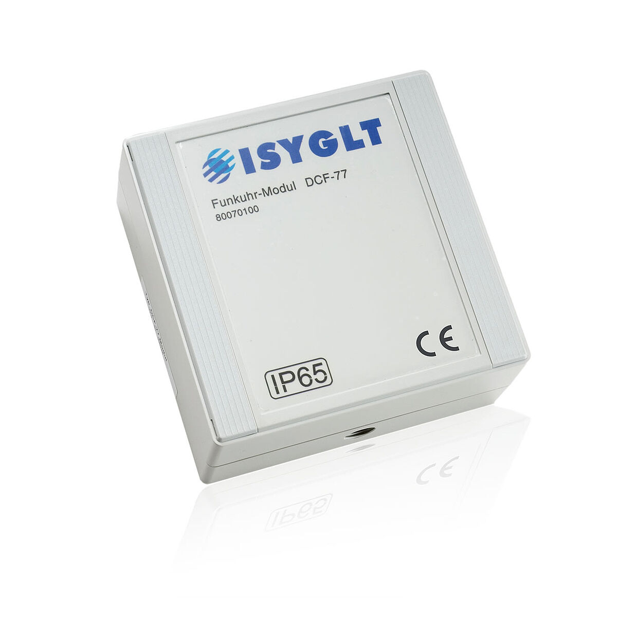 Mit der Funkuhr können Funktionen des ISYGLT-Systems zeitabhängig gesteuert werden. Das Funkuhr-Modul empfängt die genaue Uhrzeit, das Datum und den Wochentag (Sommer-, Winterzeit und Schaltjahre werden automatisch berücksichtigt) des DCF-77 Senders, bereitet die Daten für das ISYGLT-System auf und sendet die aufbereiteten Daten über das Subnet zum Master.