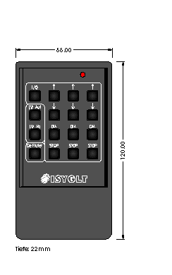 Mit dem ISYGLT-Infrarot-Handsender werden die Funktionen des BUS-Systems schnurlos ferngesteuert. Die Tasten des Infrarot-Handsenders können individuell auf beliebige Sendekanäle programmiert werden. So müssen Änderungen in der Funktion oder im Layout des Handsenders nicht umgeklemmt bzw. im System umprogrammiert werden.