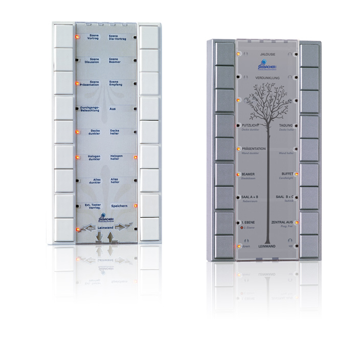 Der Raum-Controller RC-T-IR ist eine vielfältig einsetzbare Bedienstelle für das ISYGLT-BUS-System. Die 18 Tasten und Rückmeldungen können frei programmiert und zugeordnet werden. Durch die verschiedenen Farbvarianten und Designmöglichkeiten des Covers lässt sich der Raum-Controller gut in verschiedenste Designkonzepte integrieren.