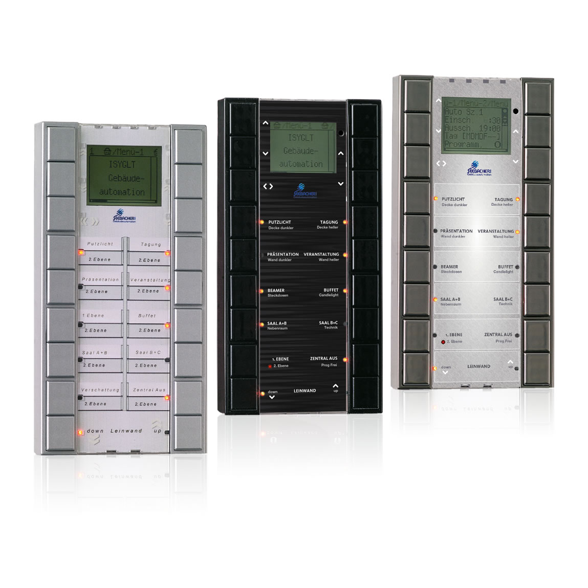 Der Raum-Controller ist in Bezug auf Bediengeräte das Bindeglied zwischen normalen Tasten und einem Touch-Panel. Wie bei allen ISYGLT-Modulen wurde auch hier auf vielfältige Einsatzmöglichkeiten geachtet. Die Grundversionen der Raum-Controller unterscheiden sich in den Varianten mit und ohne Display.