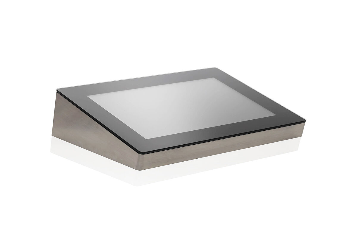 | Bauform | schwarze Touch-Bedienstelle im Edelstahl-Pultgehäuse |