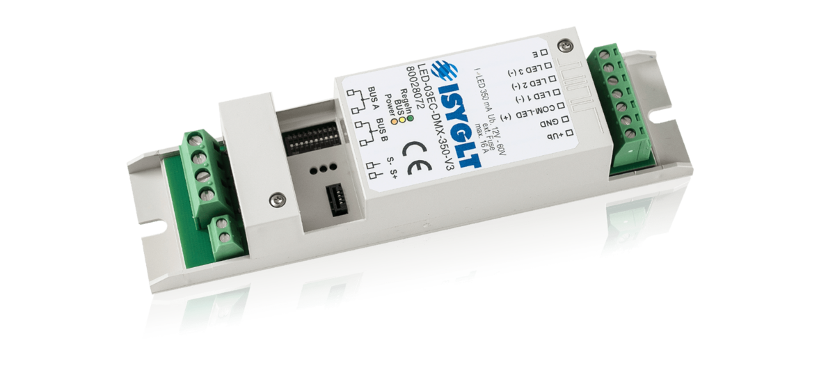 Der LED-Dimmer kann wahlweise am ISYGLT-BUS oder DMX512-BUS betrieben werden.
