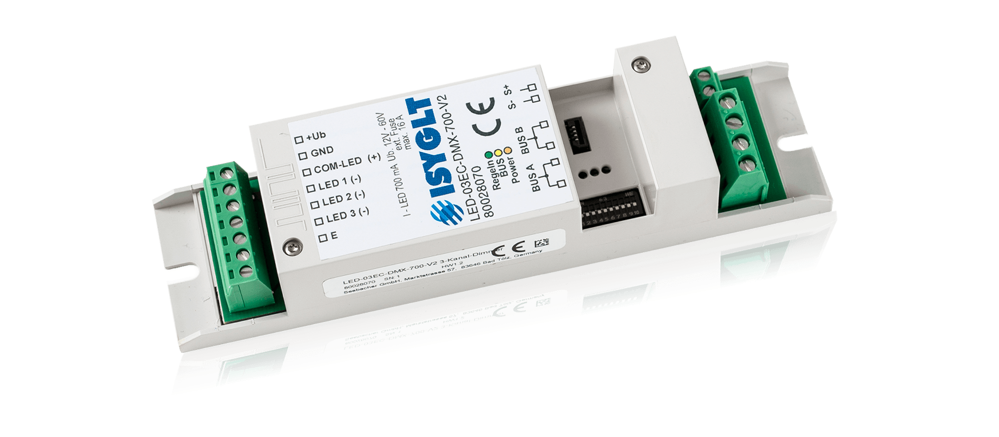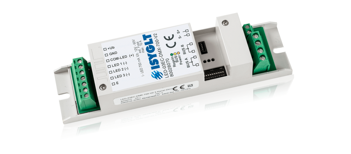Der LED-Dimmer kann wahlweise am ISYGLT-BUS oder DMX512-BUS betrieben werden.