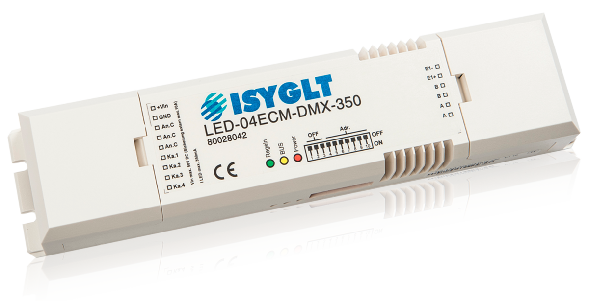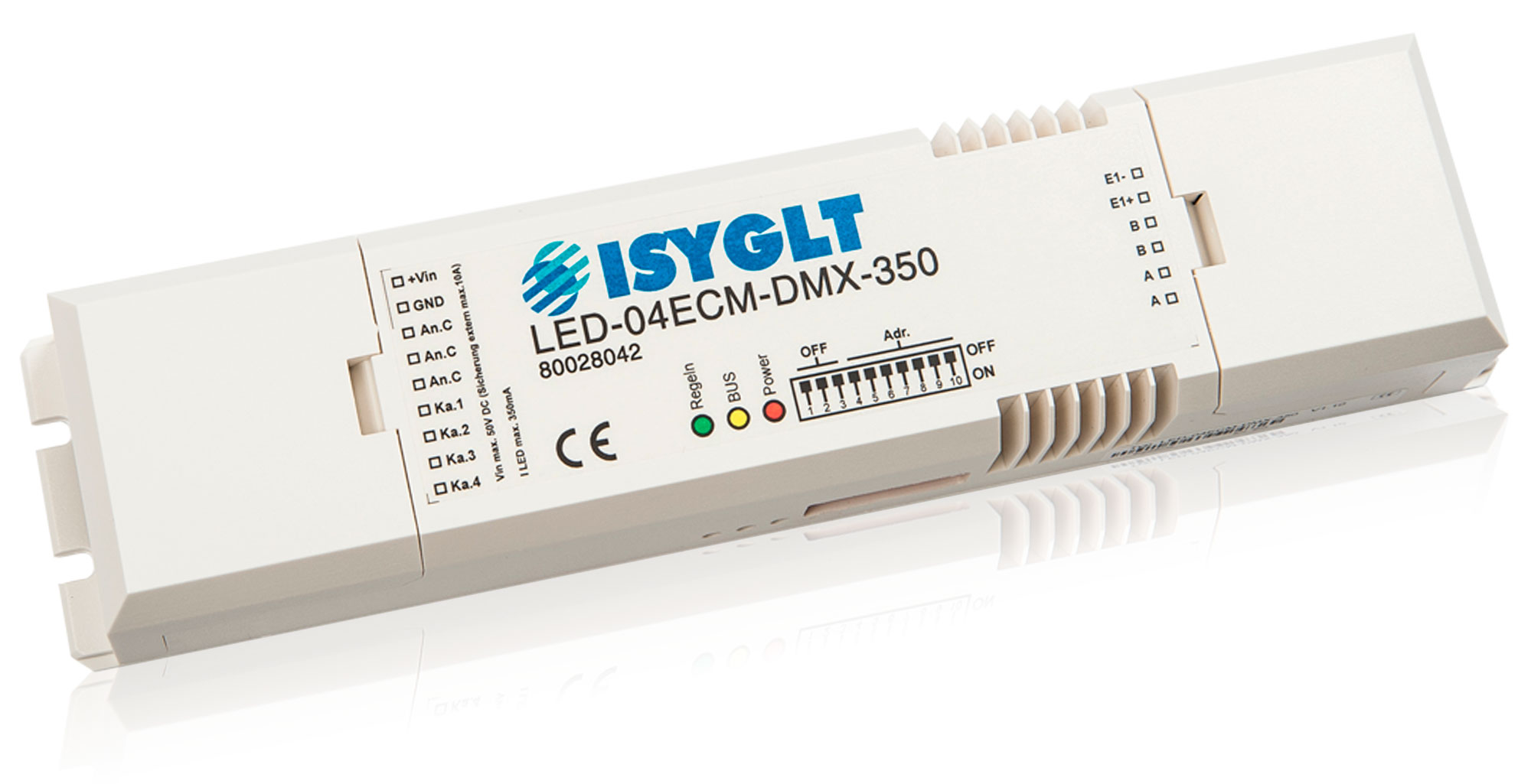 Der LED-04ECM-DMX-350 kann wahlweise am ISYGLT-BUS oder DMX512-BUS betrieben werden.