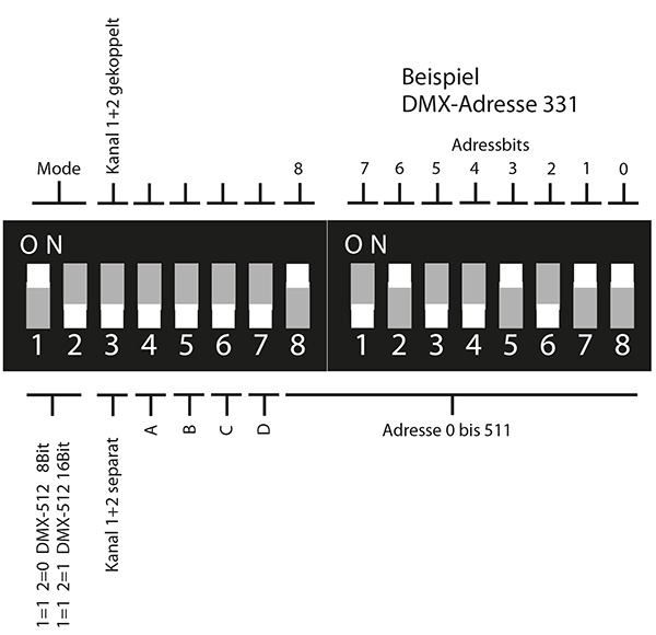 DIP-Schalter im DMX-Betrieb