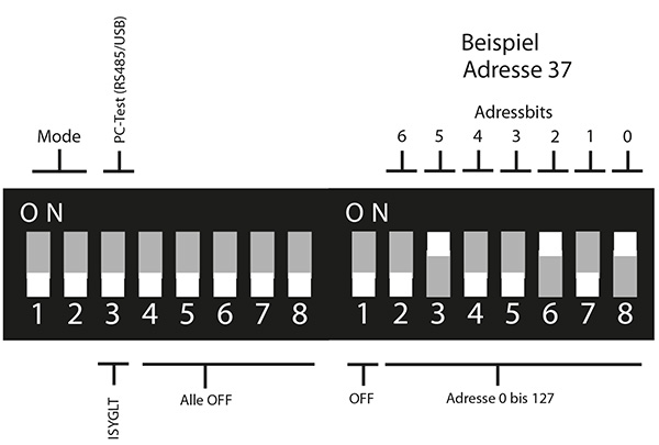 DIP-Schalter im ISYGLT-Betrieb