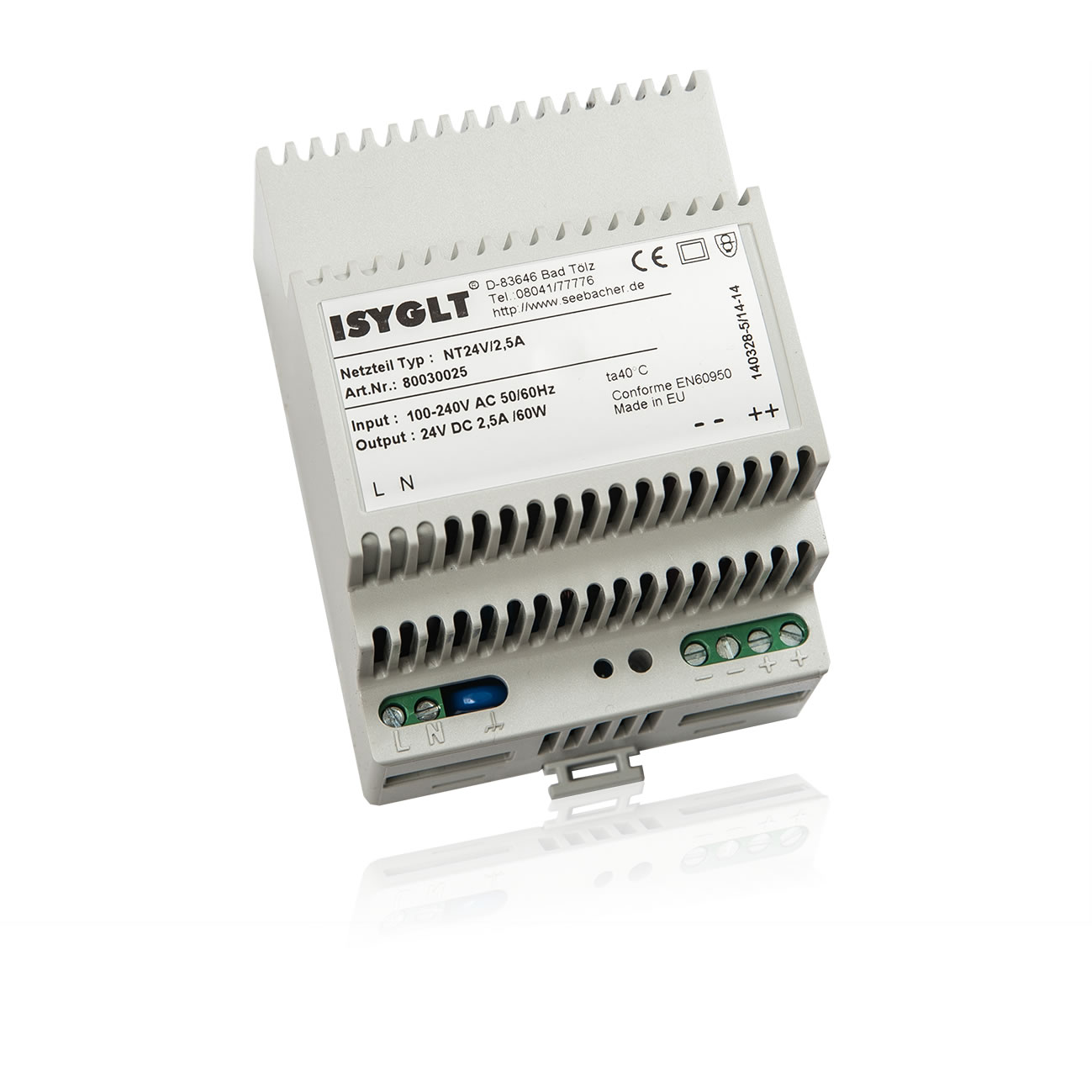 Das Netzteil dient zur Betriebsspannungsversorgung der ISYGLT-BUS-Komponenten.