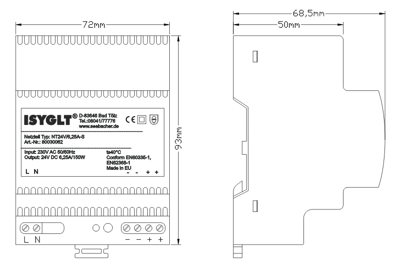 Das Netzteil dient zur Betriebsspannungsversorgung der ISYGLT-BUS-Komponenten.